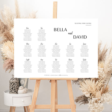 This is a DIY printable Seating Chart Canva digital template for a modern minimalist theme wedding, party or event.