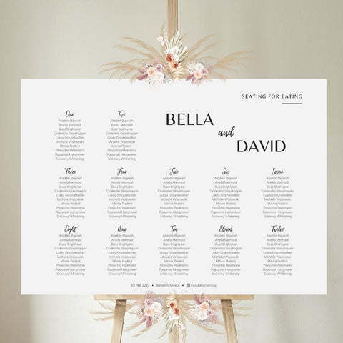 Customise the colour scheme as you wish with this elegant Seating Chart to suit your unique wedding, party or event theme colour palette. It also features our designer's carefully selected Canva font pairing.