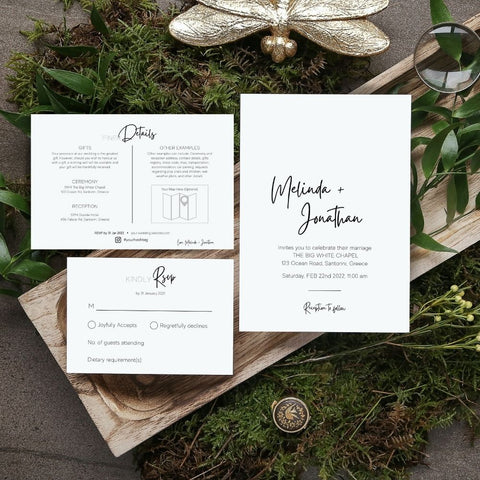 Giselle Minimalist Wedding Invitation 3-piece Suite