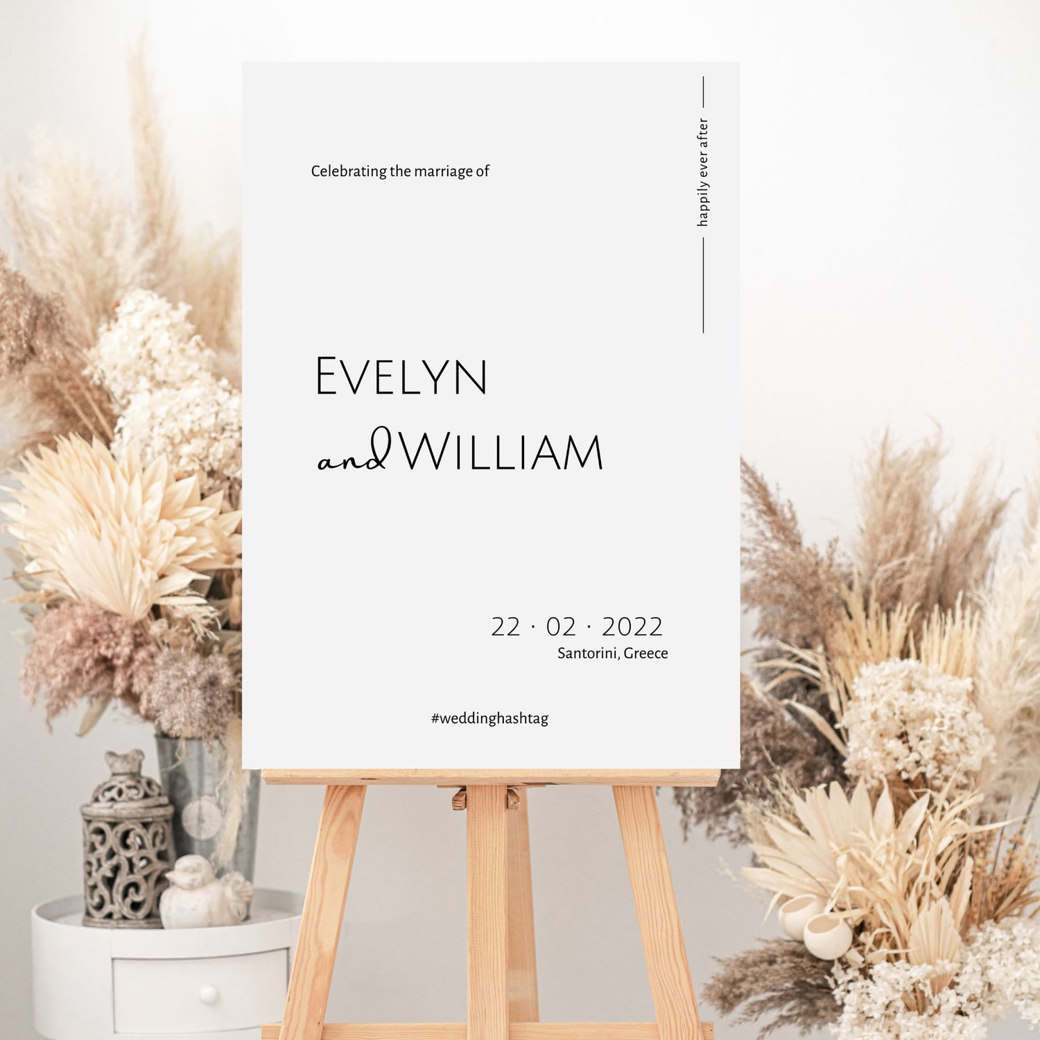 This is a DIY printable Welcome Sign Canva digital template for a modern minimalist theme wedding, party or event.