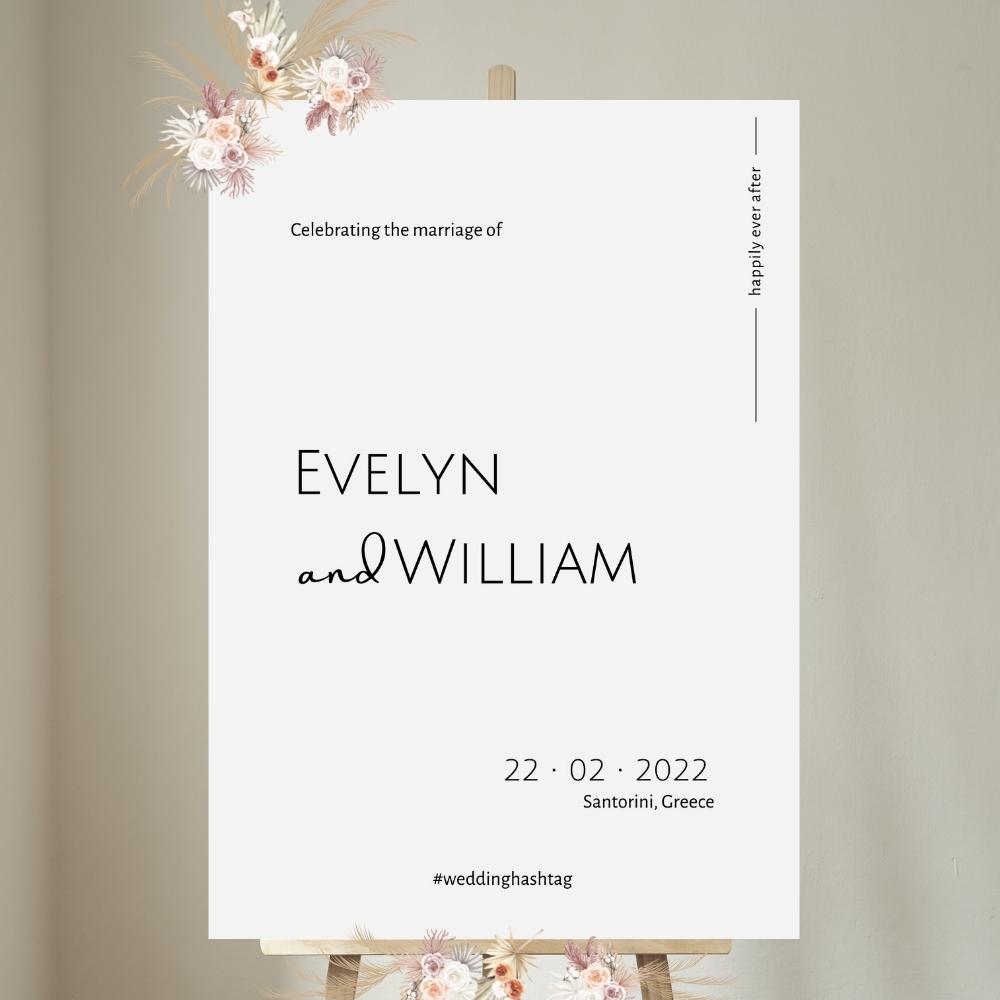 Customise the colour scheme as you wish with this elegant Welcome Sign to suit your unique wedding, party or event theme colour palette. It also features our designer's carefully selected Canva font pairing.