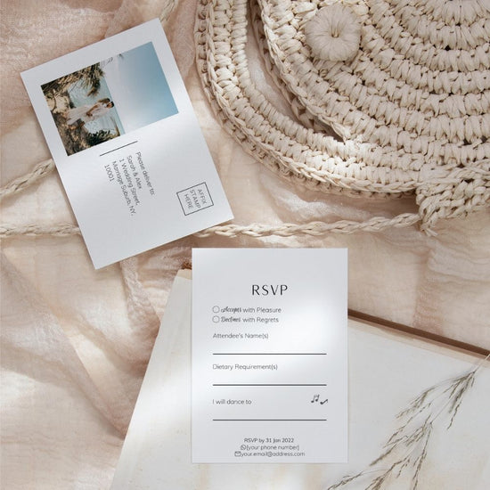 Customise the colour scheme as you wish with this elegant Details Card to suit your unique wedding or event theme colour palette. It also features our designer's carefully selected Canva font pairing and our simple yet classic Details Card wording example.